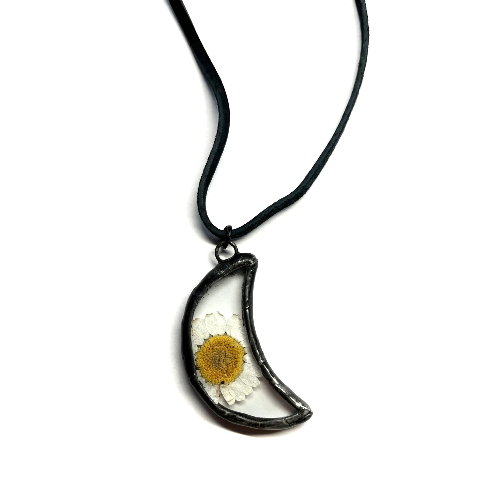 Each stained-glass pendant is handcrafted in America using real pressed flowers, set in genuine glass (never plastic) and framed with lead-free solder in your choice of silver, black, or copper. Every finish comes paired with a matching 14–17 inch American-made leather cord and clasp for a seamless, polished look.