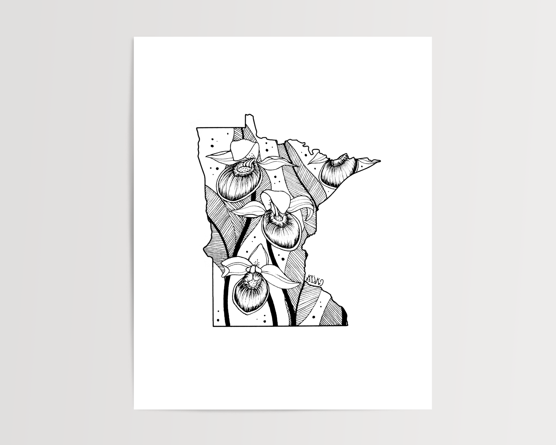 Minnesota - Pink and White Lady's Slipper State Flower Print